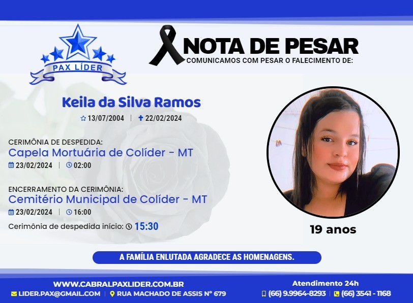 Será sepultada hoje às 15:30h, a jovem Keila da Silva Ramos, 19 anos, que faleceu…